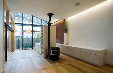 この問題に対しこの事例は、50㎡の4軒の戸建住宅をインナーガーデンと名付けた玄関や階段のある屋外のような内部空間で繋げた長屋建ての賃貸住宅とすることで、この緩衝空間を活用しています。